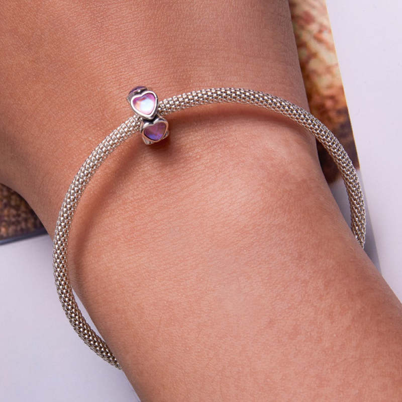 Dije de tapón de cristal iridiscente en forma de corazón Dije espaciador Plata