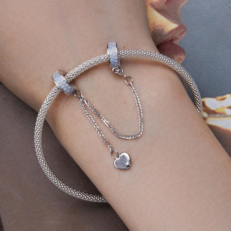 Catena Con Ciondolo Di Sicurezza Con Nappa A Cuore In Argento