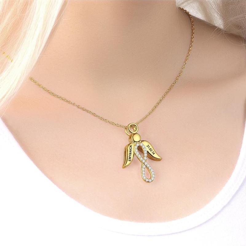 Collana Infinity Collana Incisa Con Ali Collana Con Nome Regali Per Fidanzata Placcata In Oro 14k