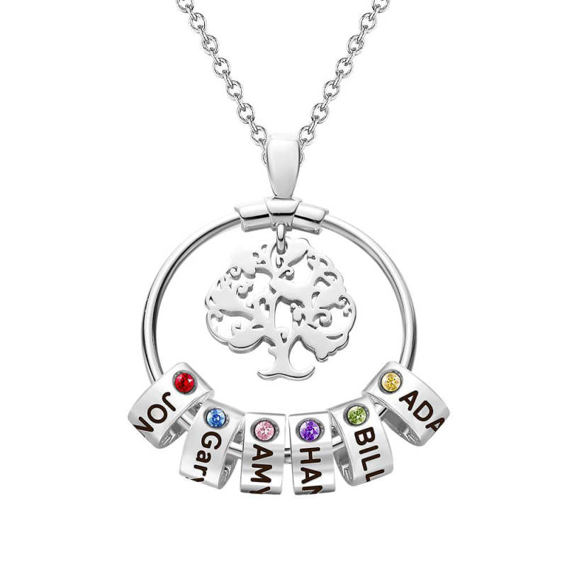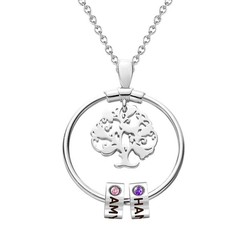 Collana con albero della vita inciso con regali personalizzati in pietra del parto - argento