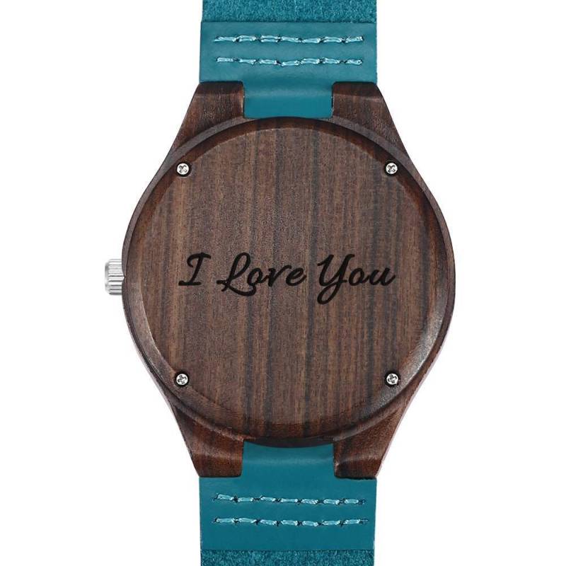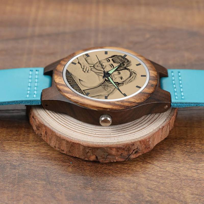 Orologio da Uomo in Legno Registrabile con Cinturino in Pelle Blu - Sandalo