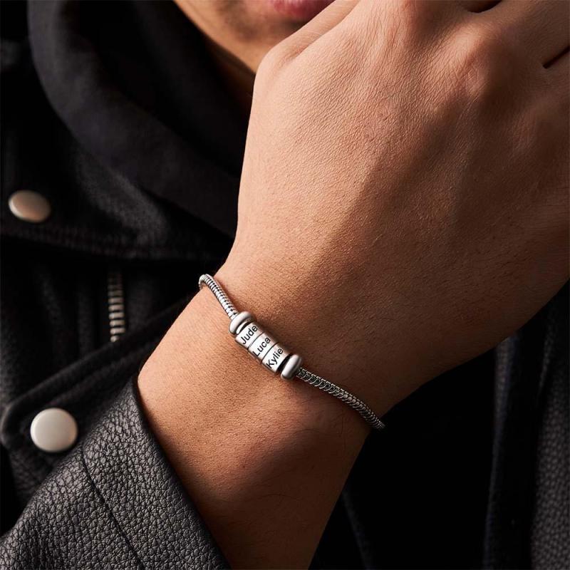 Accessorizza con stile utilizzando il nostro bracciale a catena da uomo. Realizzato con materiali di prima qualità, questo elegante gioiello è il regalo perfetto per il tuo ragazzo, marito o padre per la festa del papà. Scegli tra una selezione di finiture argento, oro o oro rosa e personalizza con da 1 a 6 perline opzionali. Migliora il tuo look e fai una dichiarazione con questo accessorio intramontabile e versatile.