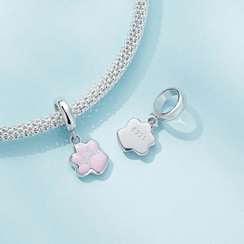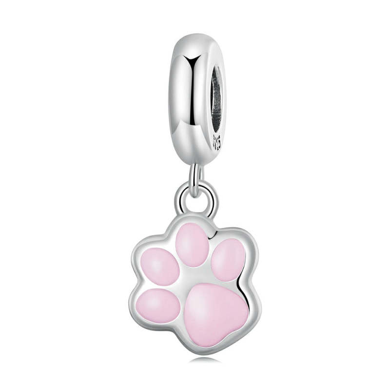 Mini Ciondolo Con Zampa Di Gatto Bianco In Argento