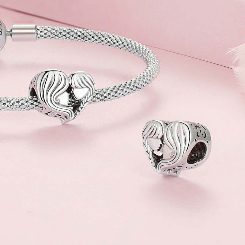 Ciondolo Con Facce Laterali Amorevoli Di Madre E Figlia, Argento