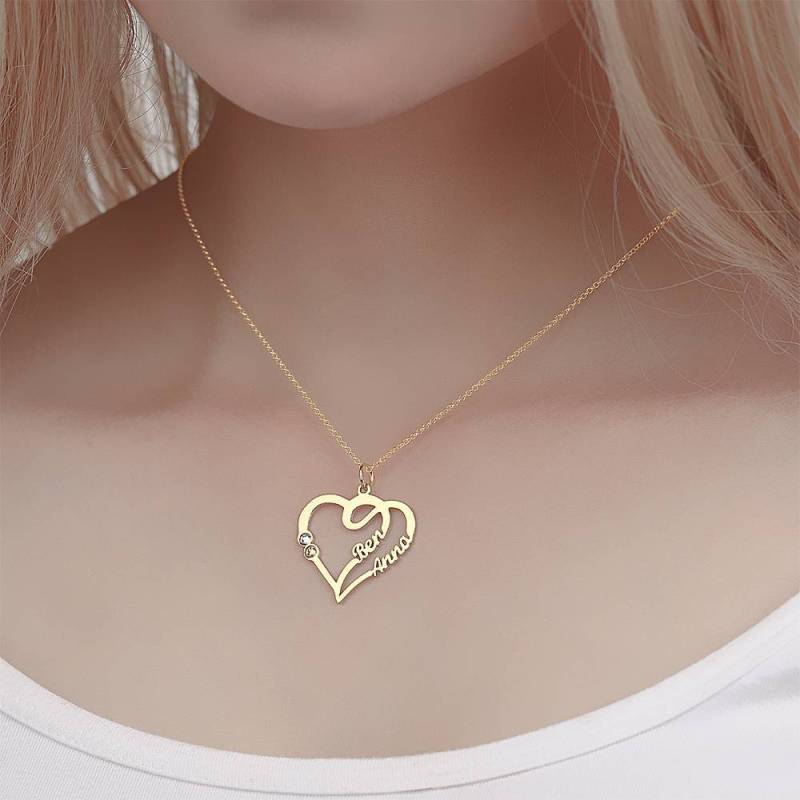 Collana Con Nome, Due Nomi Con Pietra Di Nascita Personalizzata Placcata In Oro 14k - Argento