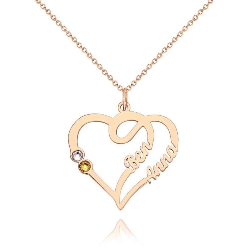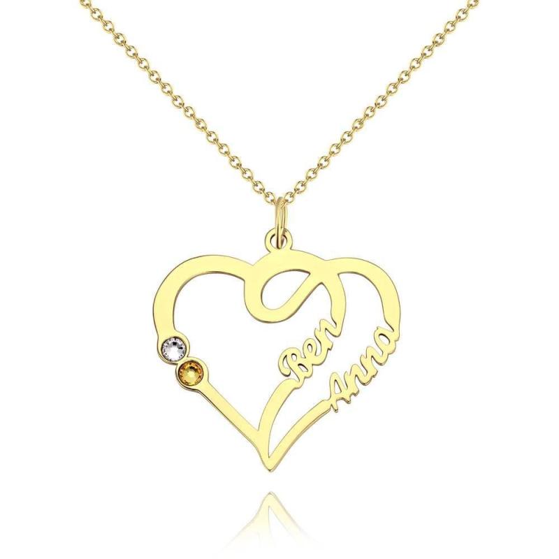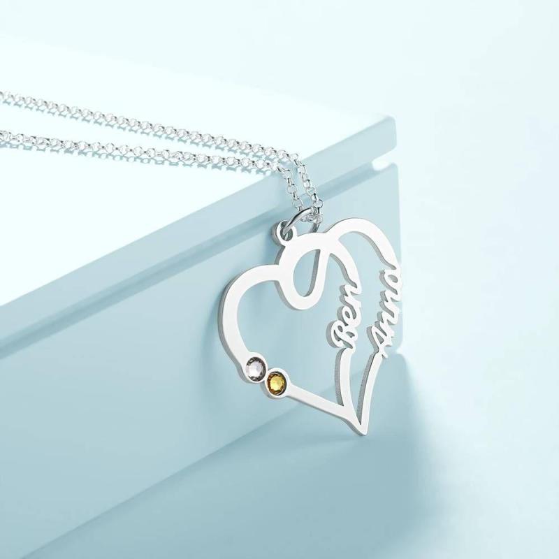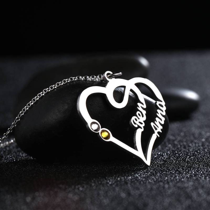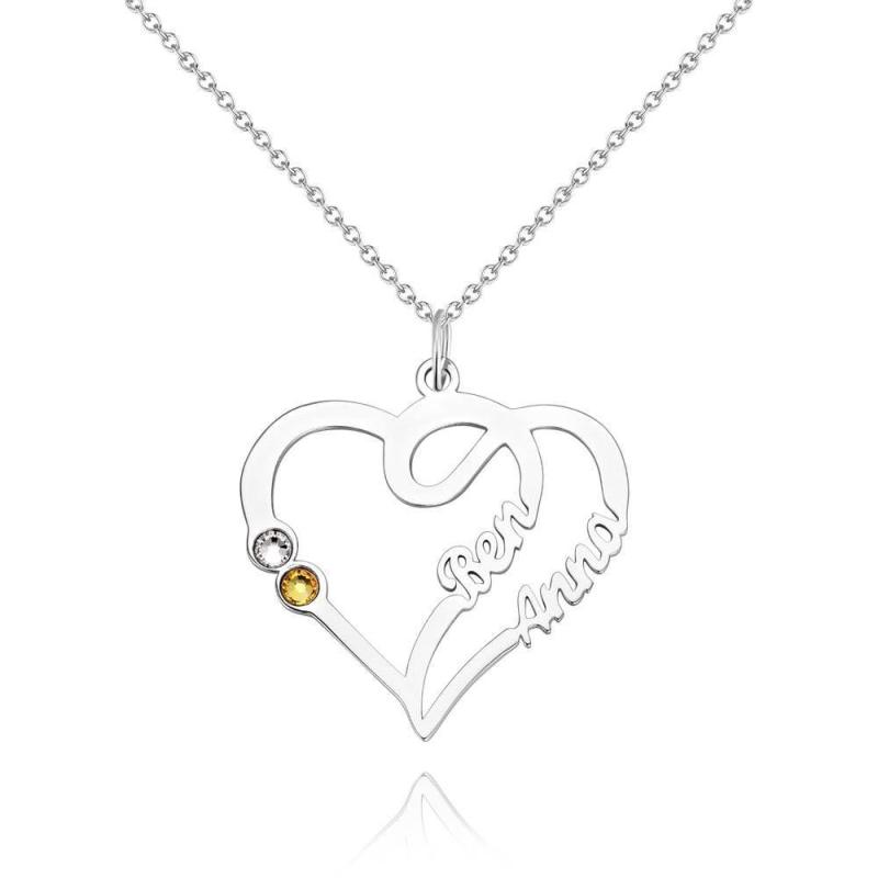 Collana Con Nome, Due Nomi Con Argento Personalizzato Birthstone