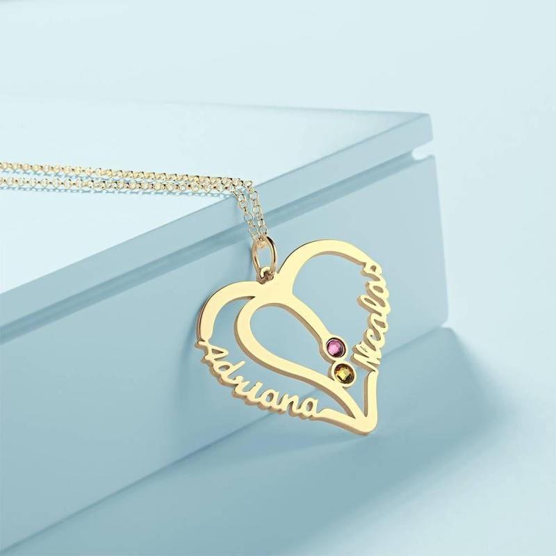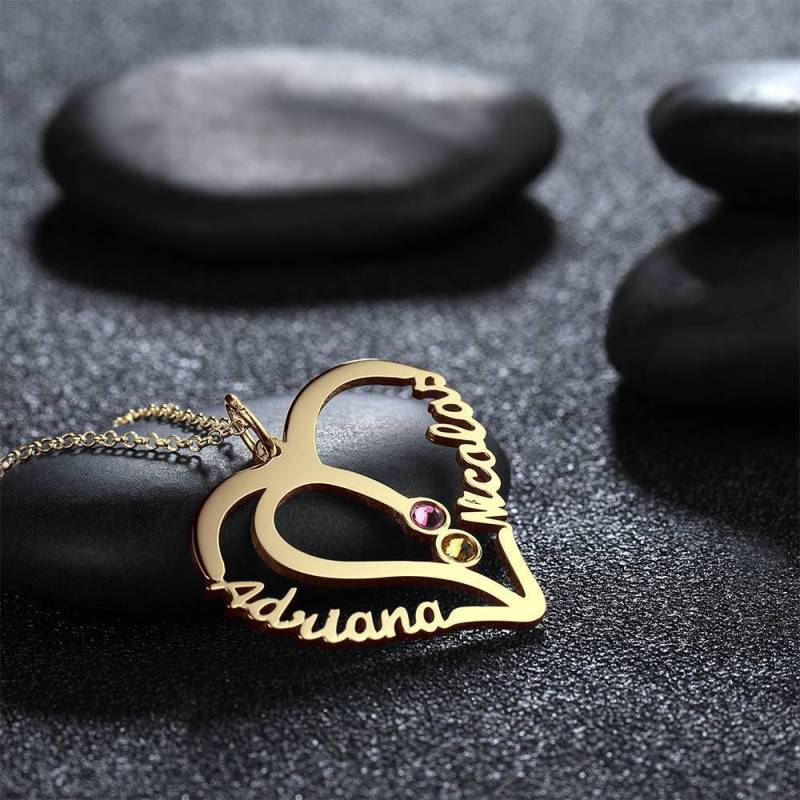Collana Con Nome Con Due Pietre Di Nascita Placcate Oro 14 Carati - Argento