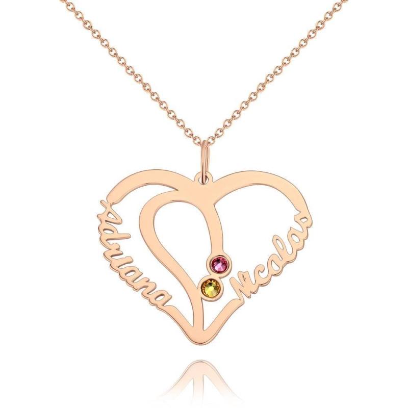 Collana Con Nome Con Due Pietre Di Nascita Placcate In Oro Rosa - Argento