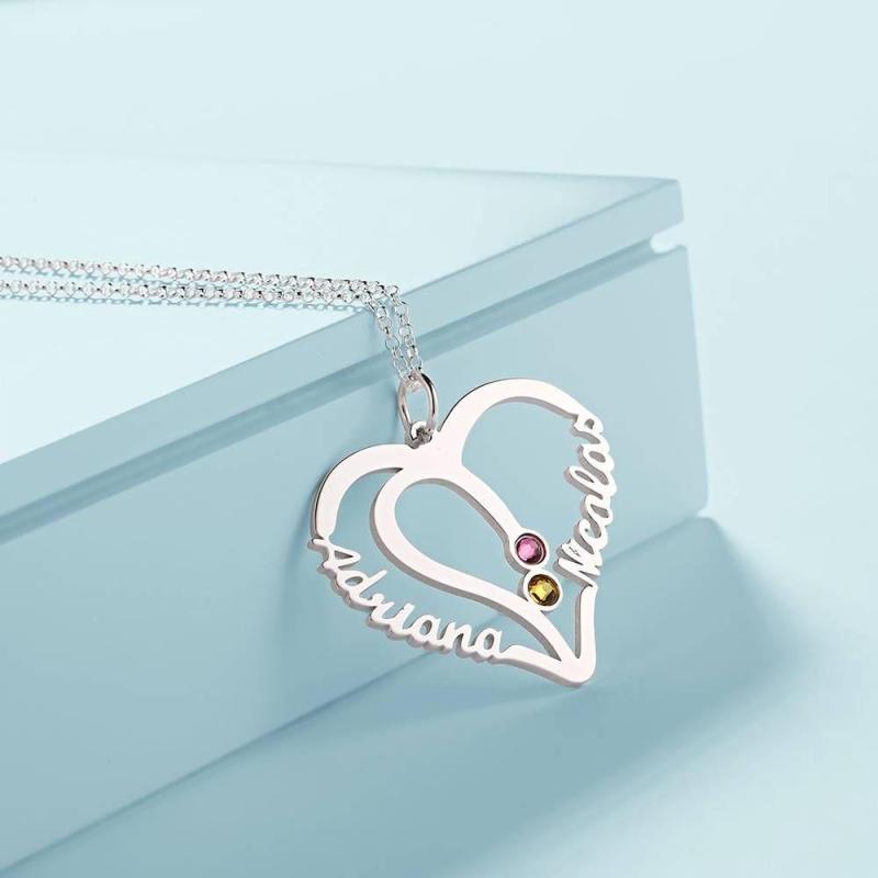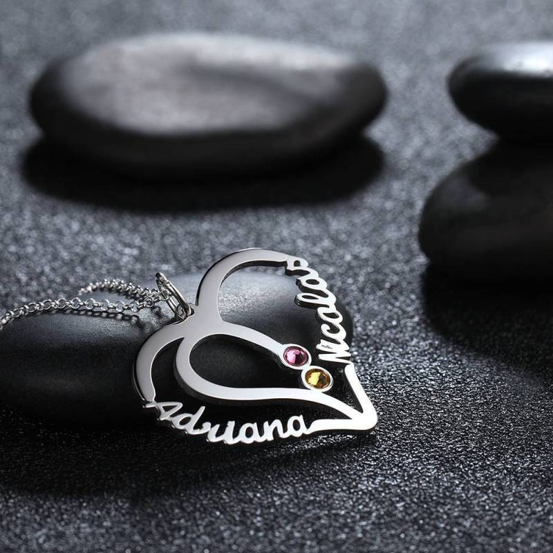 Collana Con Nome Con Due Pietre Di Nascita In Argento