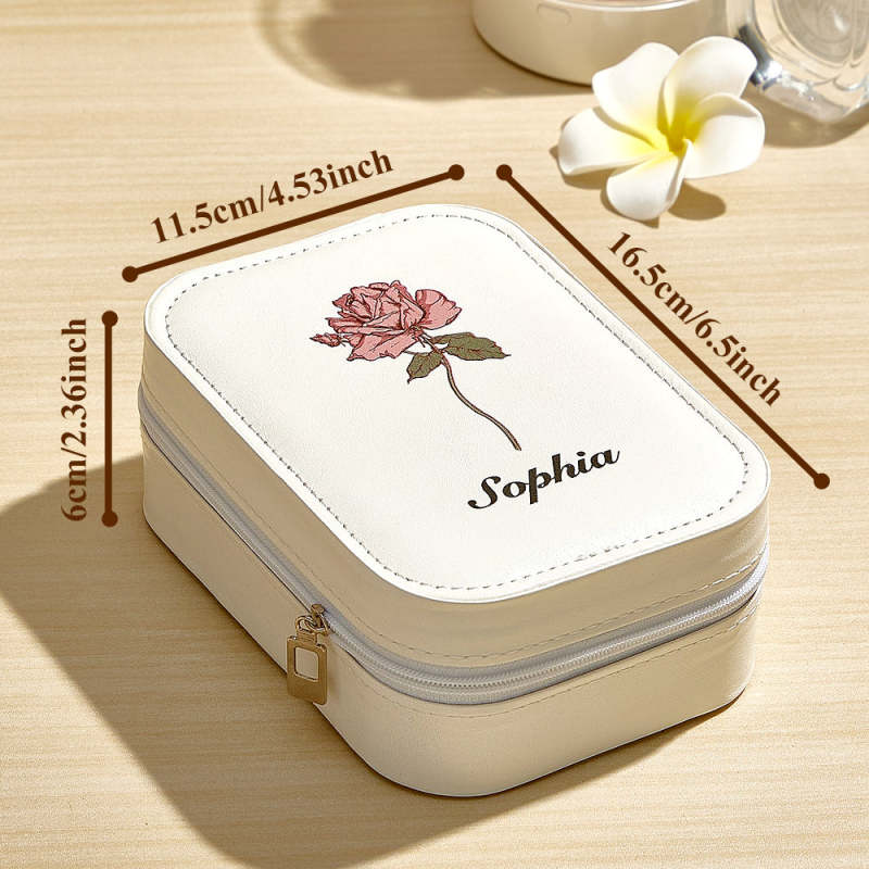 Migliora la sua routine di bellezza quotidiana con il nostro portagioie personalizzato in pelle con fiore nascita. Questo portagioie ha uno specchio LED con tre impostazioni di colore regolabili: luce calda, naturale e fredda. Personalizza con il suo fiore natale per un regalo di compleanno speciale che apprezzerà. Mantieni i suoi gioielli al sicuro e il suo stile in perfetto stile con questo pezzo unico e funzionale.