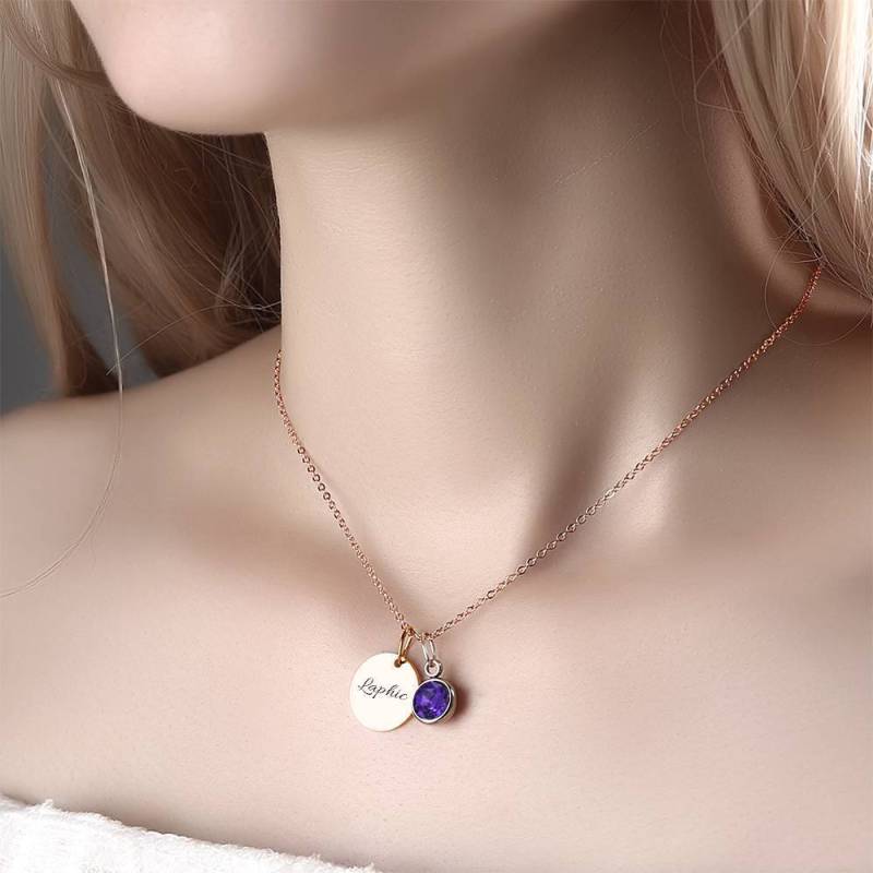 Collana Iniziale Con Tag Collana Birthstone Personalizzata Con Incisione In Argento Placcato Oro Rosa