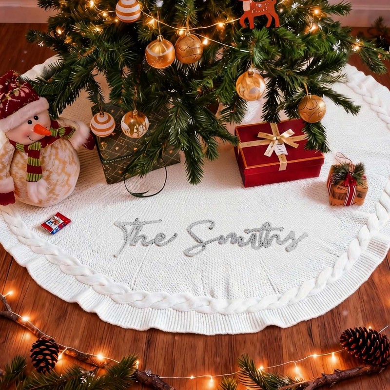 Celebra le festività natalizie con la nostra gonna per albero di Natale personalizzata con nome. Questa accogliente gonna in maglia è progettata per avvolgere il tuo albero di Natale con calore e fascino personale. Realizzata in morbido tessuto a maglia, può essere utilizzata sia come morbida coperta per le fredde serate invernali che come centrotavola festivo per le riunioni di famiglia. Personalizza la gonna con un nome nel colore che preferisci e scegli tra il classico rosso o bianco per abbinarla perfettamente alle tue decorazioni natalizie. Disponibile in tre diametri per adattarsi a qualsiasi albero: 62 cm, 92 cm e 122 cm. Rendi la tua casa davvero speciale con un regalo di Natale unico nel suo genere.