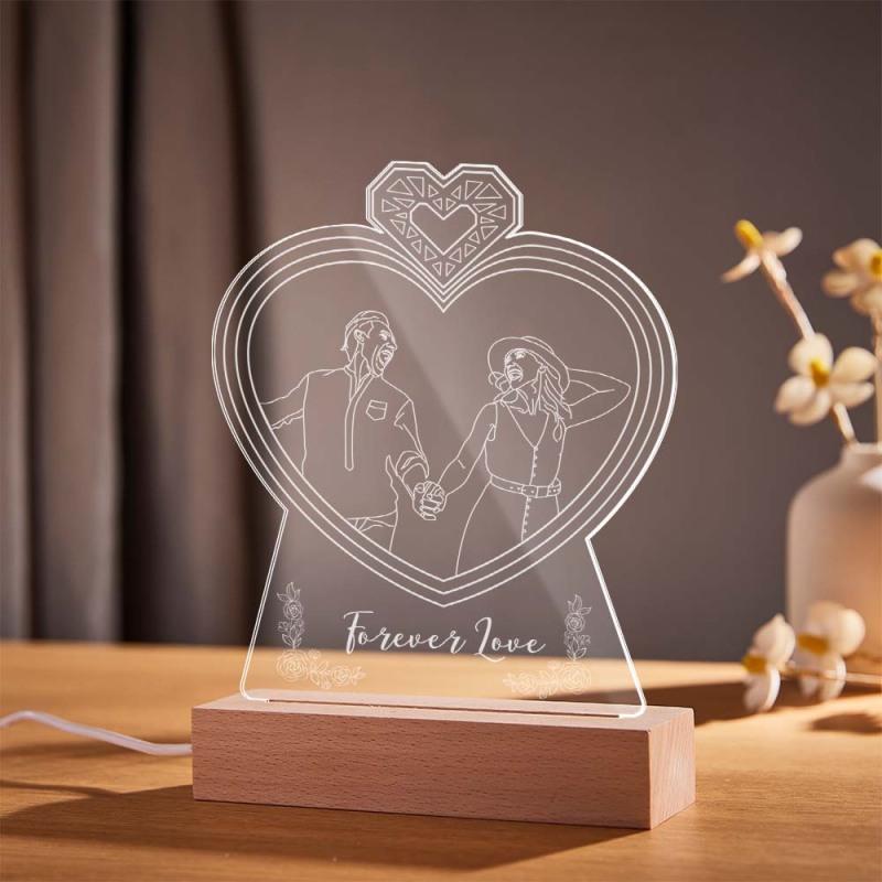 Luce Notturna Personalizzata Con Doppia Foto A Forma Di Cuore Lampada 3d Con Incisione Personalizzata 7 Colori Luce Notturna In Acrilico Regali Per Gli Amanti