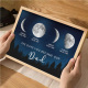 Il nome, la data di nascita e la fase lunare unica di ogni bambino sono splendidamente esposti, creando un ricordo celeste unico nel suo genere che onora i momenti speciali che lo hanno reso padre.