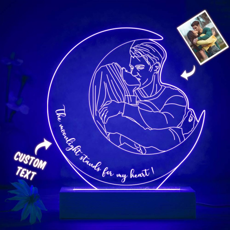 Personalizzato Moon Design Photo Night Light Lampada 3d Con Incisione Personalizzata 7 Colori Luce Notturna In Acrilico Regali Unici