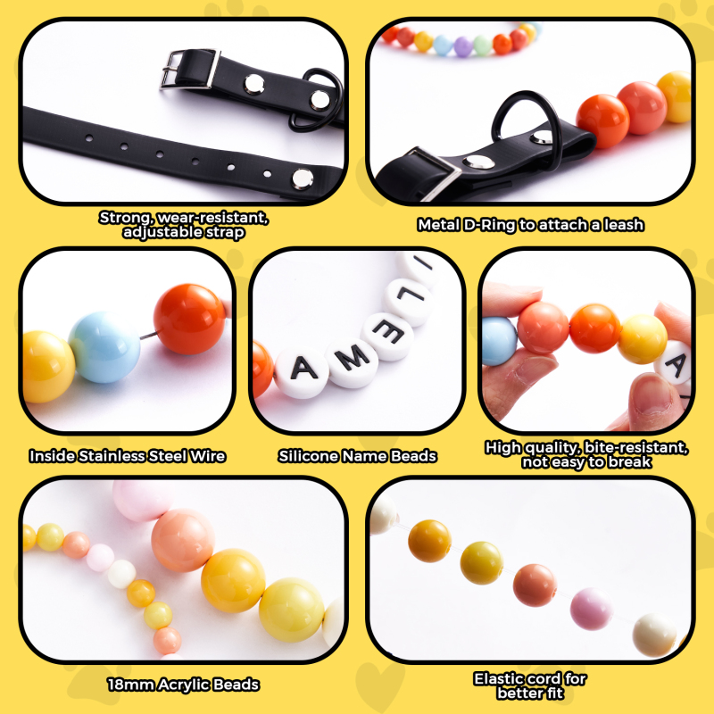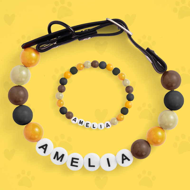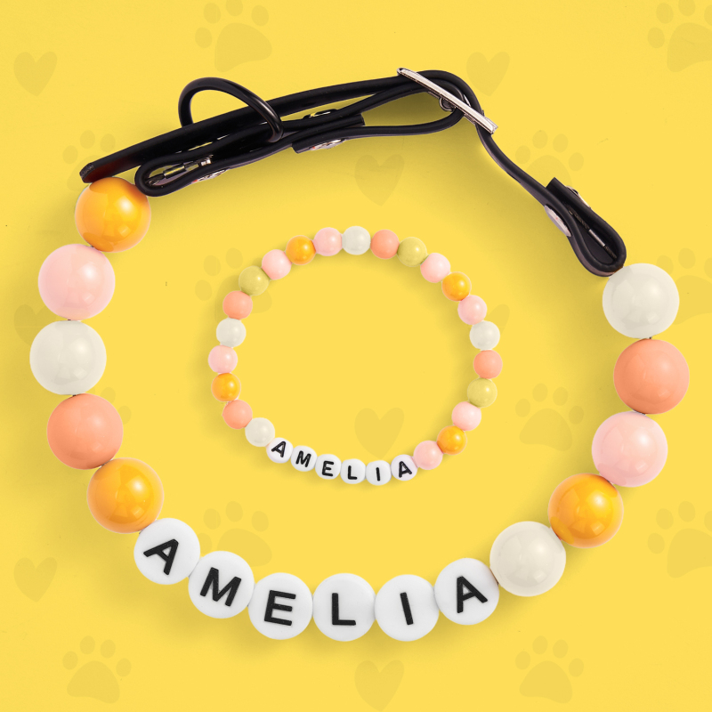 Ogni collare è personalizzato con cura con il nome del tuo animale domestico utilizzando perline divertenti e colorate. E ora, ricevi un braccialetto abbinato, completamente GRATIS! Indossalo per mostrare il tuo amore e il tuo stile insieme.