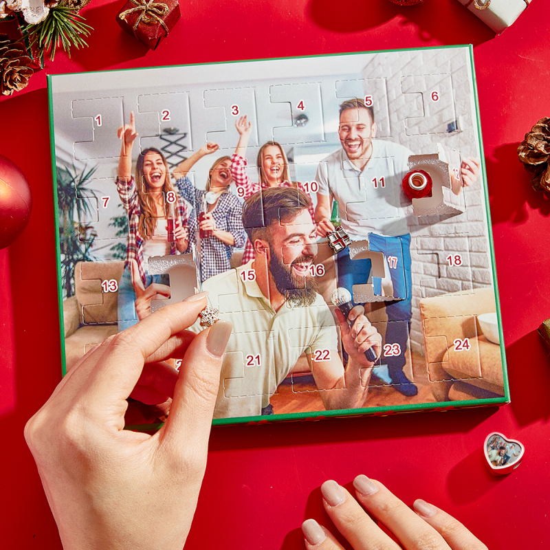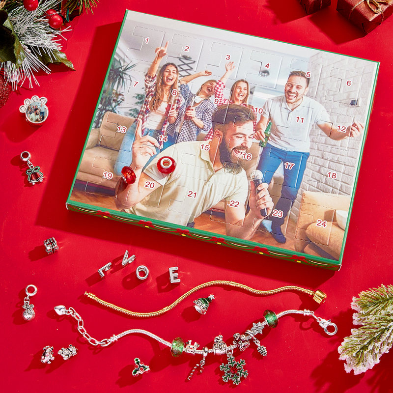 Gioielli Con Foto Personalizzati, Calendario Dell'avvento, Ciondolo Con Foto, Braccialetto Con Scatola Cieca A Sorpresa Natalizia, Braccialetto Con Scatola Regalo Con Conto Alla Rovescia Per 24 Calendari Per Un Amico