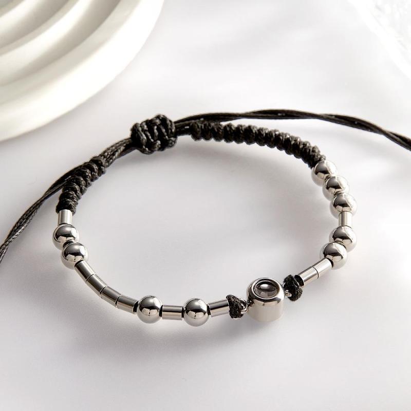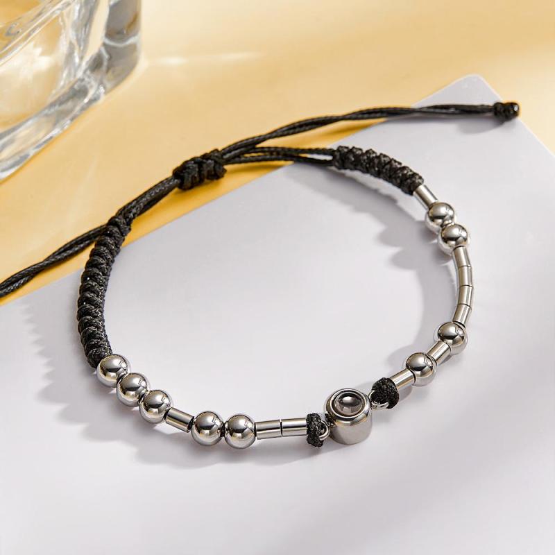 Personalizza questo braccialetto fotografico con la foto del tuo momento felice. Bracciale con foto con design in codice Morse. Tieni semplicemente il ciondolo vicino a una fonte di luce e proietterà la foto. Un regalo perfetto per compleanni, anniversari, matrimoni, festa della mamma, San Valentino e Natale. Si consiglia di rimuovere il braccialetto quando ci si trova in prossimità dell'acqua o in qualsiasi circostanza in cui il braccialetto potrebbe sporcarsi di acqua o oli per il corpo.