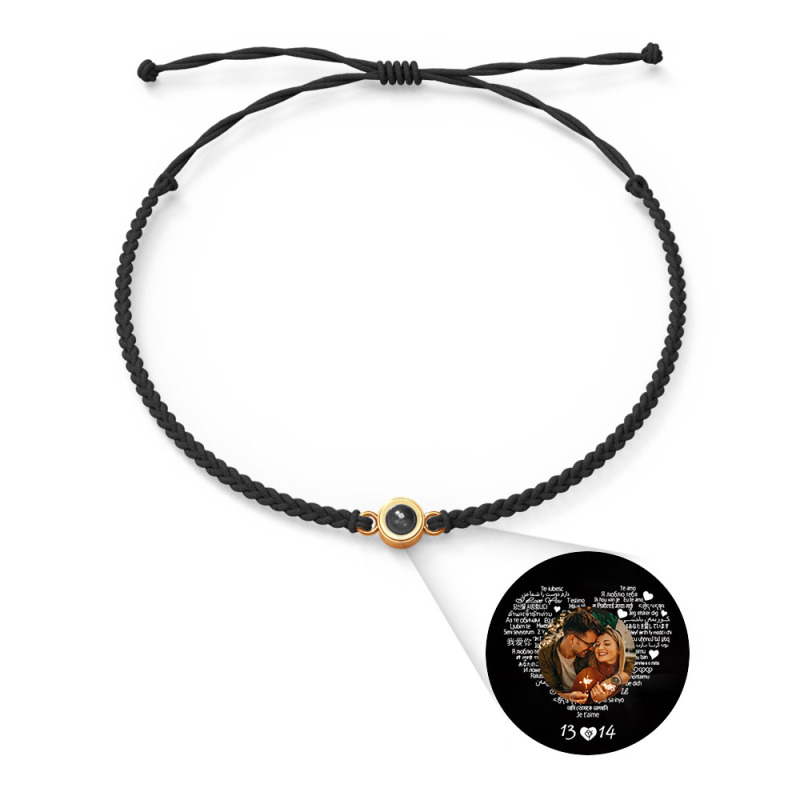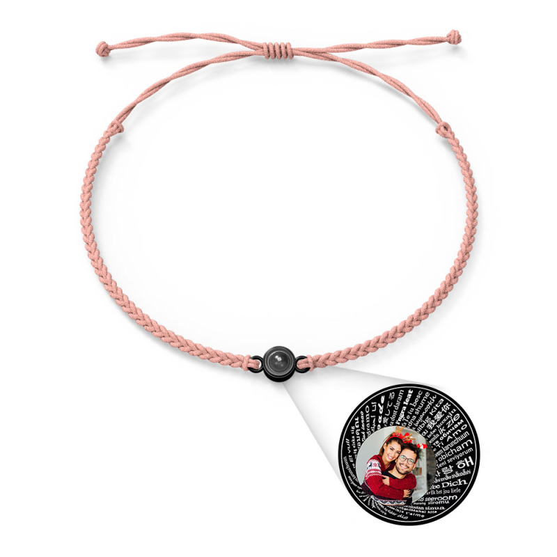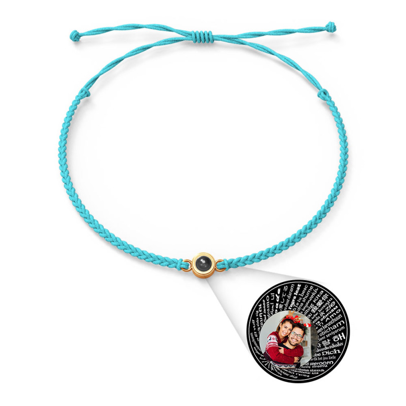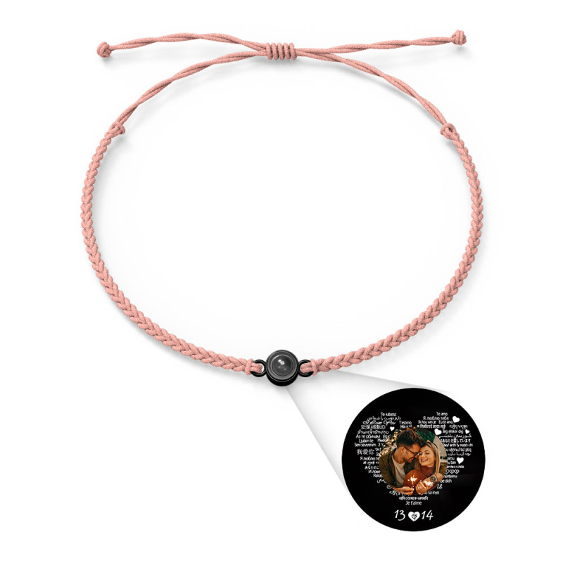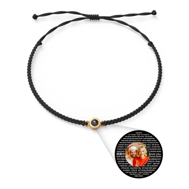 Il braccialetto con ciondolo per proiezione fotografica personalizzato è un regalo premuroso per lei. Con molteplici stili di colore e opzioni di pendente, tra cui argento, oro e oro rosa, consente infinite personalizzazioni. Scegli tra modelli come 'Ti amo' in 100 lingue o 'Buon compleanno' per renderlo unicamente tuo. Che sia per la tua ragazza o tua madre, questo gioiello fotografico minimalista è un regalo di compleanno perfetto che parla dal cuore. Disponibile in bianco, blu, rosa o nero, questo braccialetto è davvero unico nel suo genere.