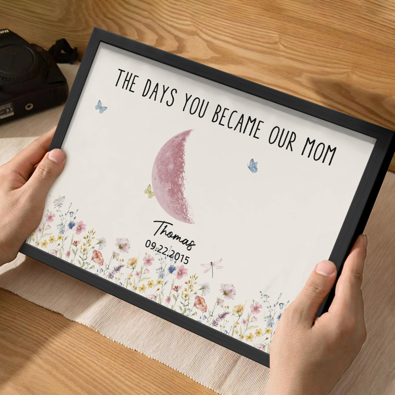 Fase Lunare Rosa Personalizzata, Luna Di Nascita Personalizzata, Bellissima Collina Di Notte Con Nomi Di Bambini, Regali Ideali Per La Festa Della Mamma.