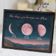 Il nome, la data di nascita e la fase lunare unica di ogni bambino sono splendidamente esposti, creando un ricordo celeste unico nel suo genere che onora i momenti speciali che l'hanno resa madre.