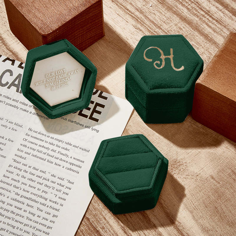 La nostra scatola per anelli è un accessorio lussuoso ed elegante per conservare ed esporre i tuoi anelli preziosi. Realizzato in materiale di alta qualità, ha una consistenza morbida e liscia che fornisce un'ammortizzazione delicata per i tuoi anelli, prevenendoli da graffi e danni. La scatola per anelli aggiunge un tocco di glamour a qualsiasi toeletta o collezione di gioielli. Non è solo una pratica soluzione per riporre gli oggetti, ma anche un bellissimo pezzo decorativo che mette in mostra la bellezza e il valore dei tuoi anelli.