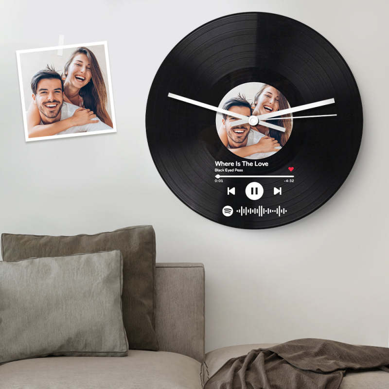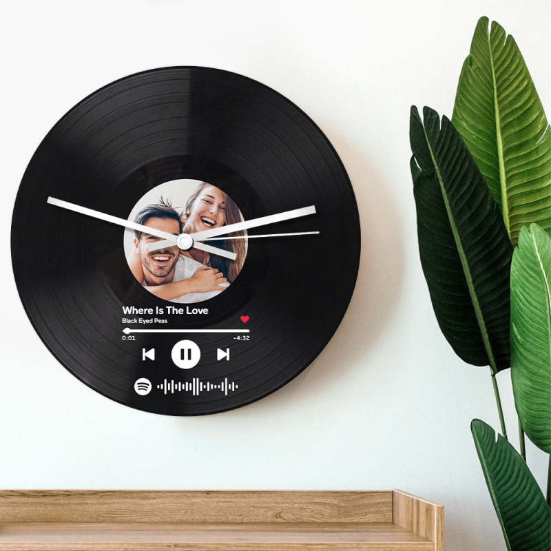 Sorprendi la persona amata con questo regalo speciale per decorare la casa: un orologio con disco in vinile personalizzato! Combina una foto di Spotify con il design di un disco in vinile per creare un regalo unico nel suo genere che sicuramente lascerà un ricordo duraturo. Personalizzalo per un regalo indimenticabile!