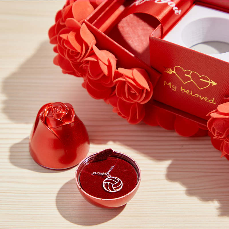 Portagioie Sollevabile A Forma Di Rosa Con Bouquet Di Rose. Confezione Regalo Romantica