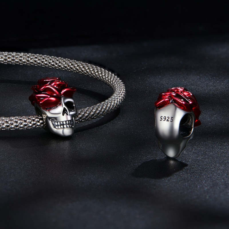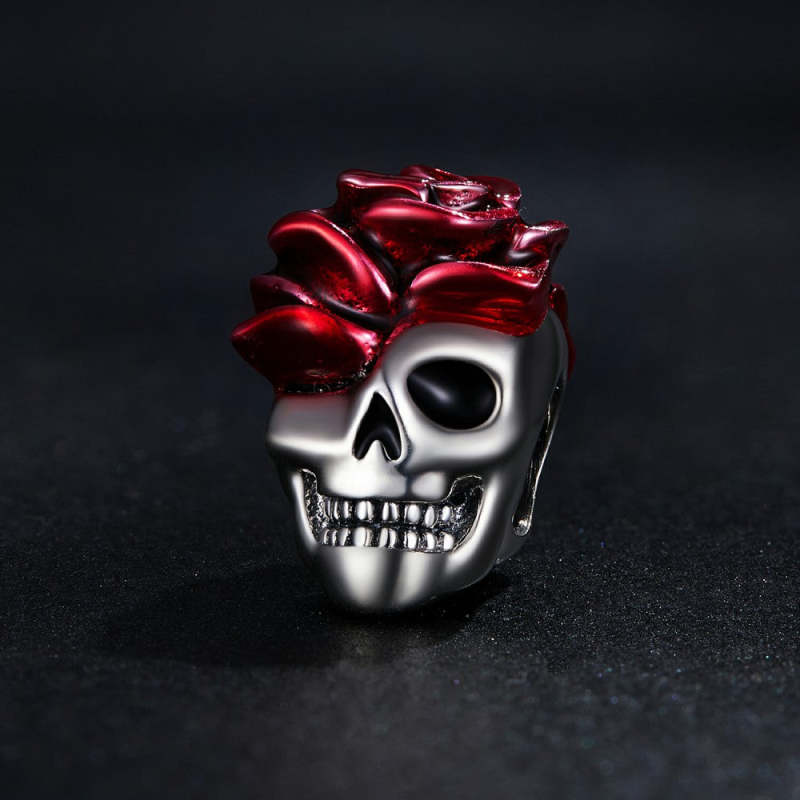 Regali Di Halloween In Argento Con Ciondolo Smaltato Con Teschio Rosa
