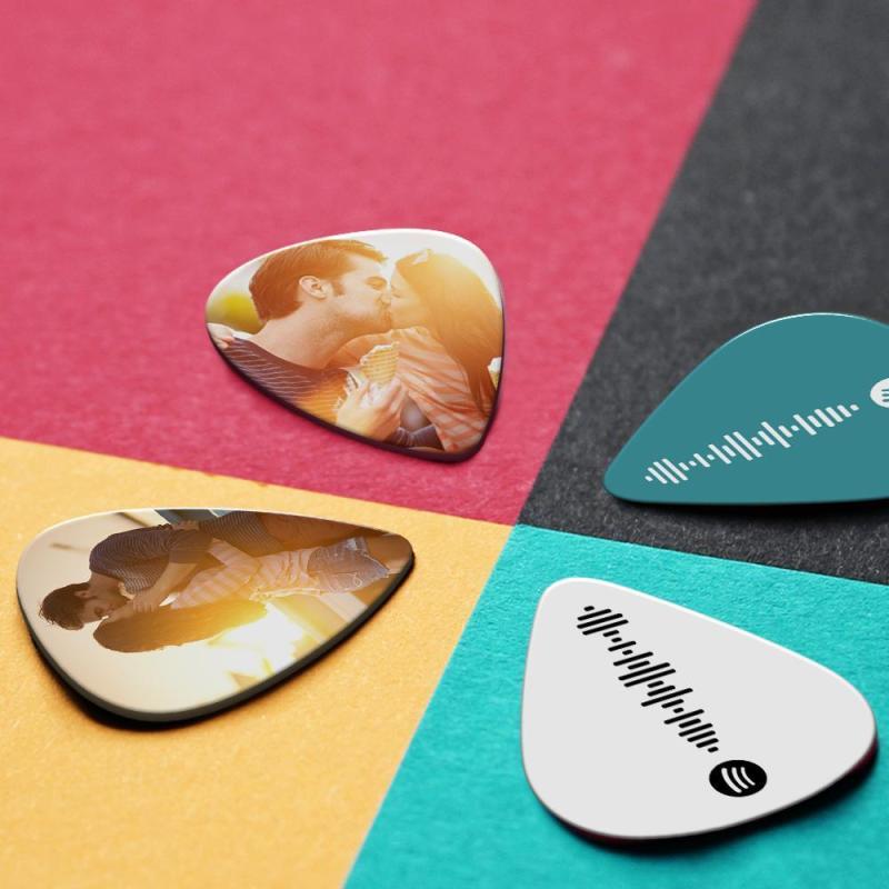 Questo plettro unico è il miglior regalo perfetto per lui / lei a Natale. Personalizza il codice Spotify Guitar Pick, scegli il titolo del brano, il nome dell'artista e le foto preferite che desideri, tutto può essere stampato sul Guitar Pick e puoi generare un codice Spotify univoco. Si prega di notare che il plettro stesso non emette musica. Devi scansionare il codice sull'app Spotify, dopo aver scansionato il codice su Spotify, la tua canzone inizierà immediatamente a suonare. A Natale, credo che questo sia il regalo più romantico, suona la musica più bella per il tuo amore.