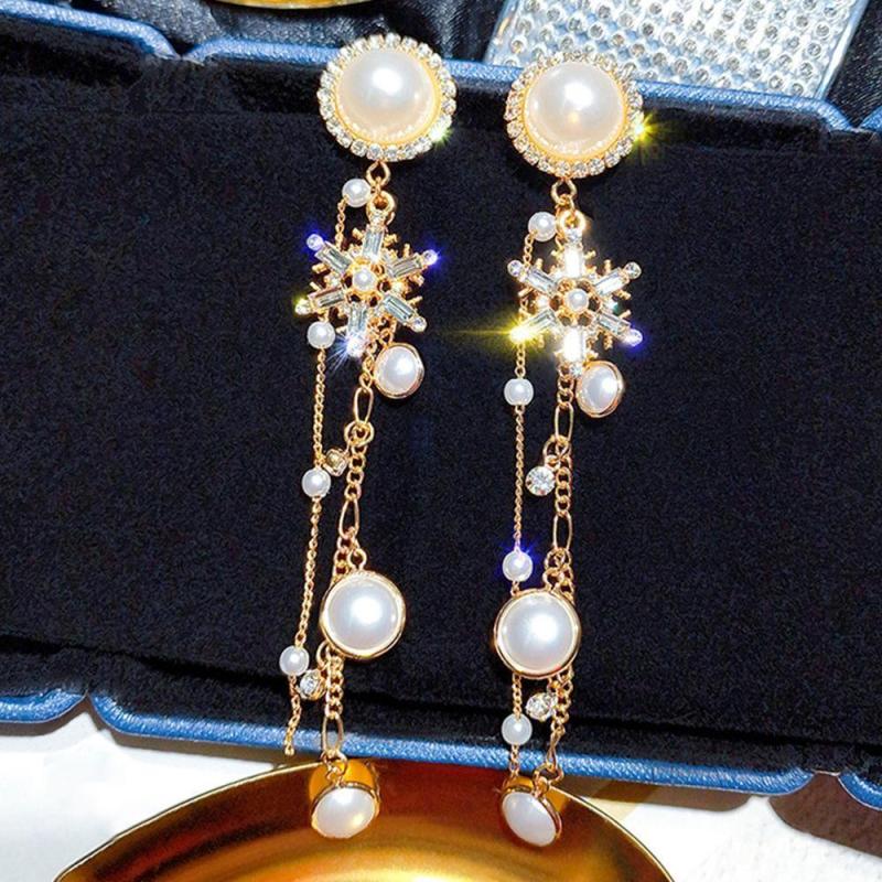 Orecchini Con Nappa E Perle Di Fiocco Di Neve