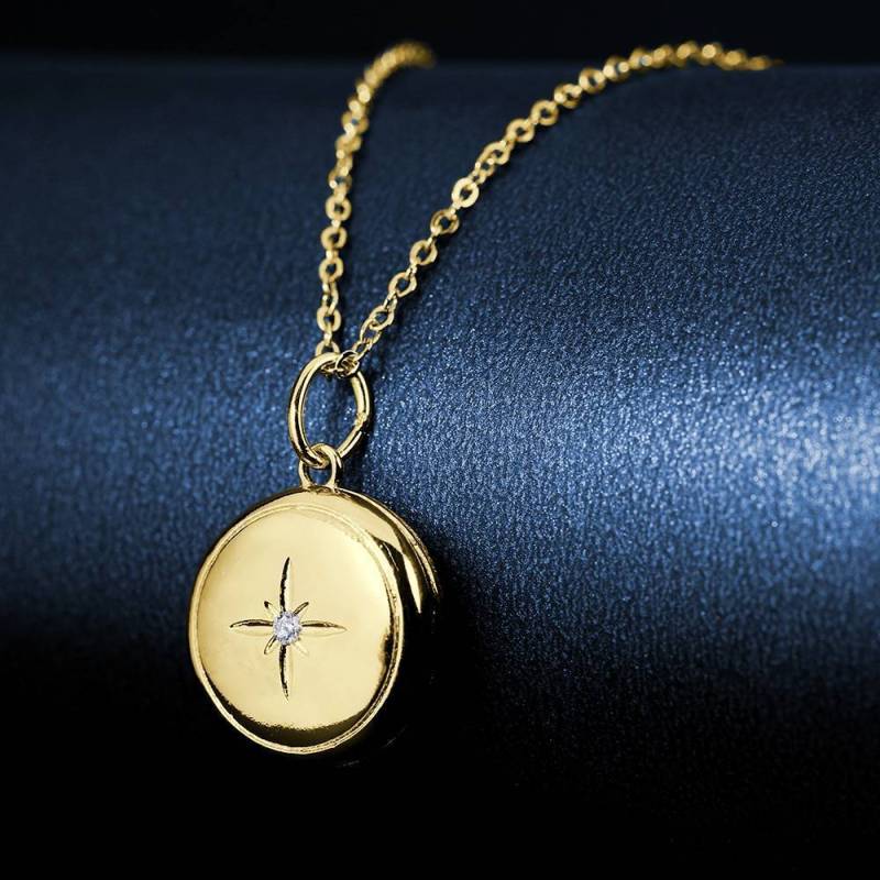Collana Con Medaglione A Forma Di Stella In Metallo Placcato Oro 14k