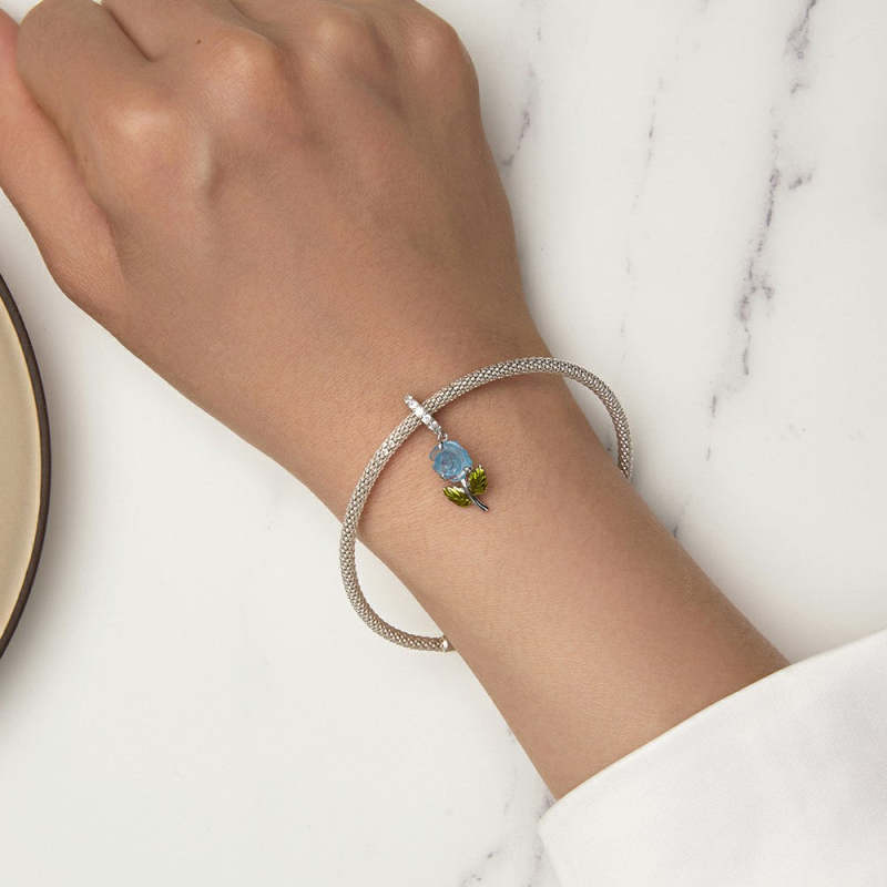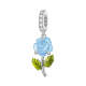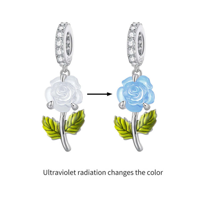 Dije colgante de rosa azul y cristal con decoloración por temperatura, Plata