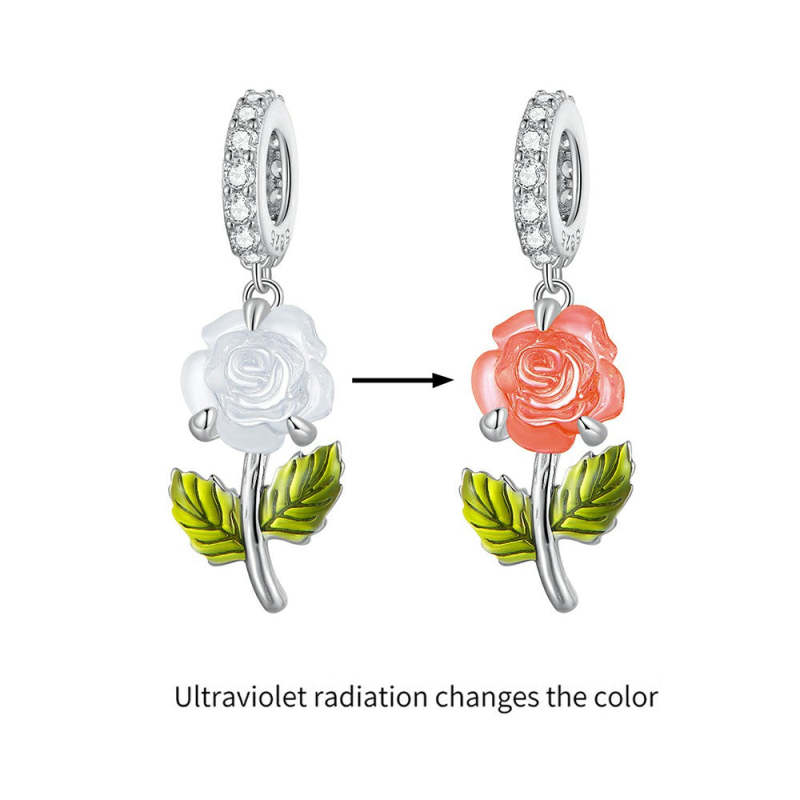 Ciondolo Pendente In Argento Con Cristallo Di Scolorimento Della Temperatura, Rosa Arancione