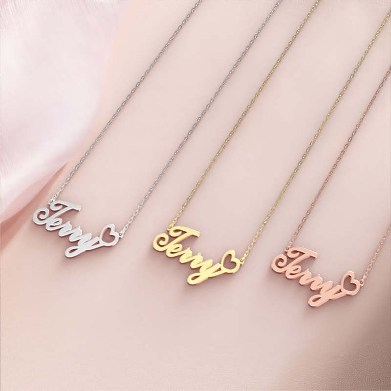 Terry Collana Con Nome Argento Antiossidante Collana Personalizzata Con Cuore, Regali Personalizzati Per Lei