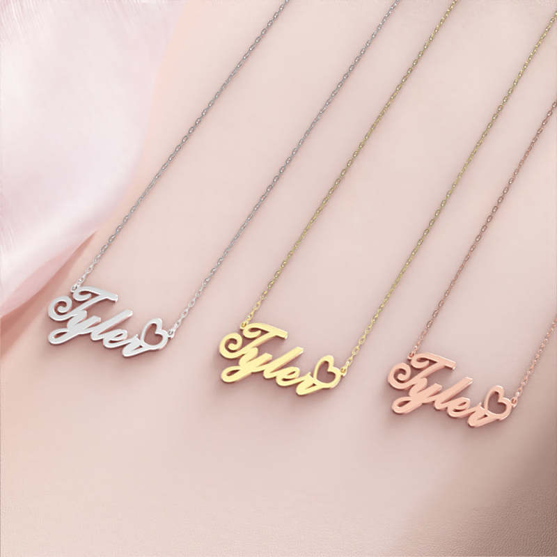 Tyler Collana Con Nome Argento Antiossidante Collana Personalizzata Con Cuore, Regali Personalizzati Per Lei