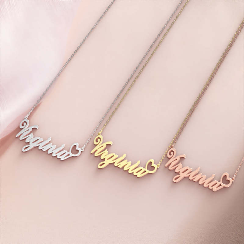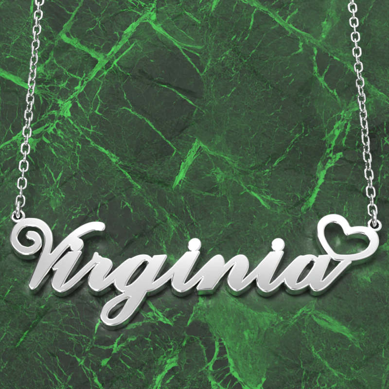 Virginia Collana Con Nome Argento Antiossidante Collana Personalizzata Con Cuore, Regali Personalizzati Per Lei