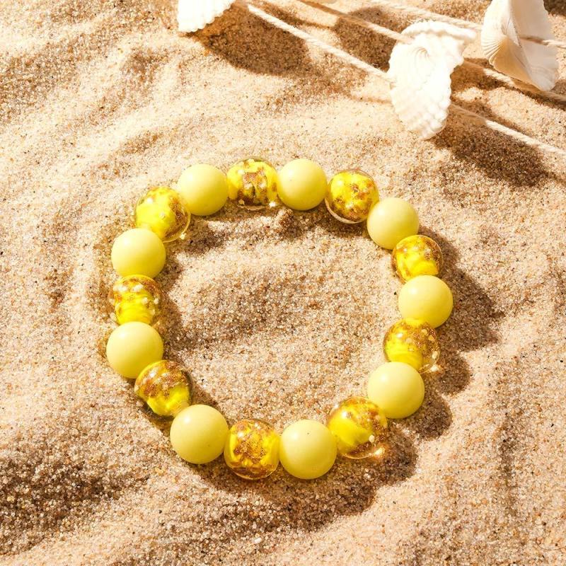 Bracciale Con Perline Elasticizzate In Vetro Giallo Lucciola. Bracciale Luminoso Che Si Illumina Al Buio