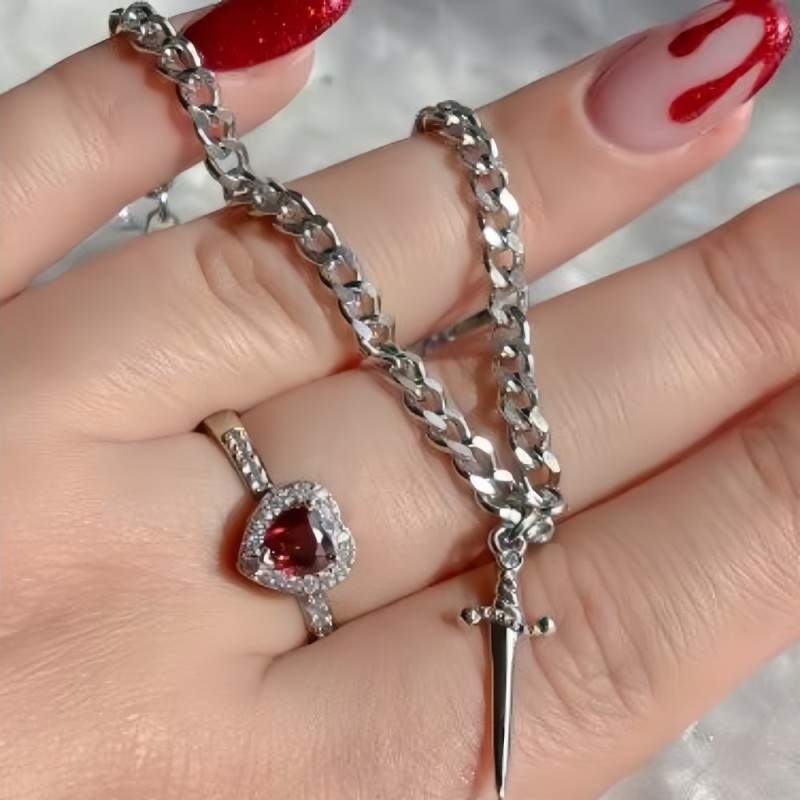 Celebra il tuo legame unico con il nostro set di anelli e braccialetti 'You Are In My Heart', splendidamente progettato per esprimere amore e connessione. Questo incantevole set include un delicato anello a forma di cuore, caratterizzato da un sorprendente motivo a spada che simboleggia forza e protezione, rendendolo un regalo perfetto per una persona speciale o un regalo premuroso per te stesso.