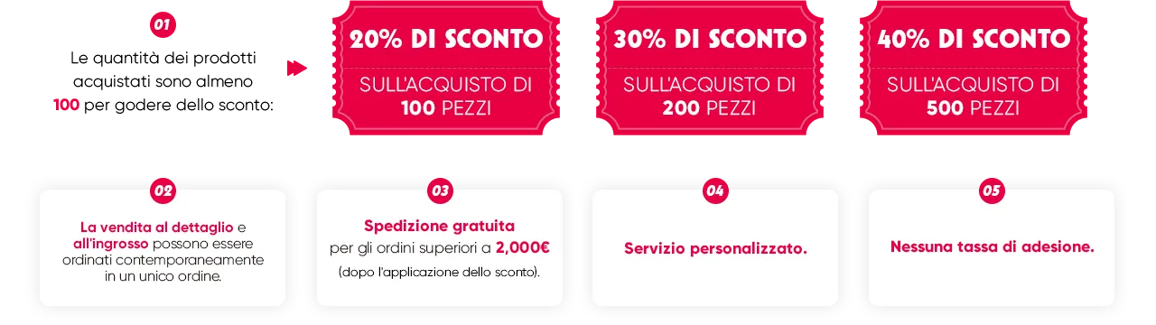 Se effettui ordini all'ingrosso, offriremo più sconti.
