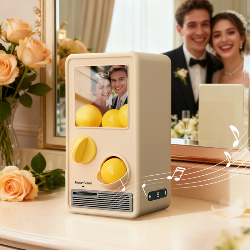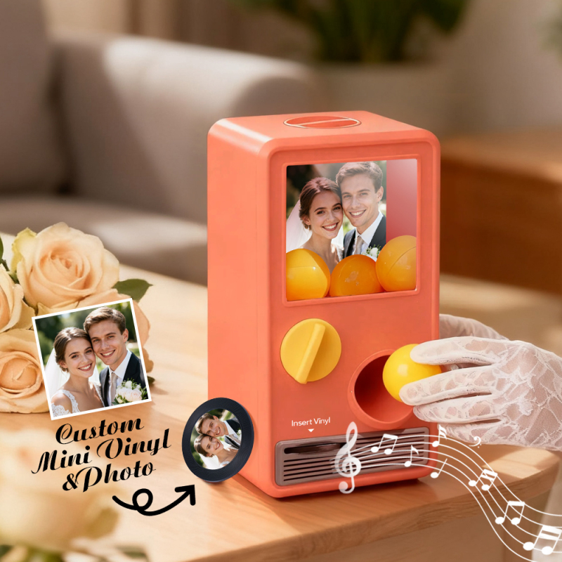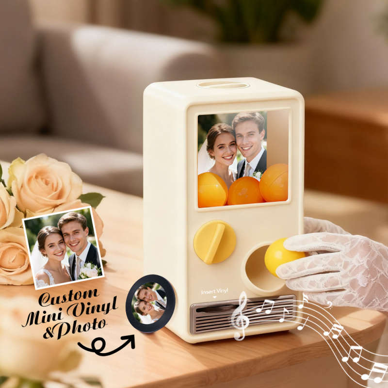 Scopri il piacere della musica e sorprendi con la nostra macchina musicale Gachapon! Ispirata a un classico distributore di capsule giocattolo, questa graziosa unità può contenere fino a 7 palline gachapon, ognuna contenente un CD unico e personalizzabile. Personalizza ogni disco con una canzone speciale e una foto significativa, quindi lascia che la macchina dia vita alle tue creazioni con una riproduzione istantanea.