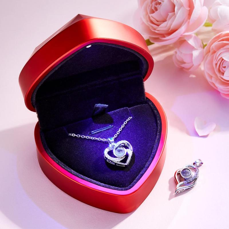 2 Pendenti Con Proiezione Di Foto, Collana Con Ciondolo A Cuore, Regali Per Donne, Mamma, Con Scatola Regalo A Forma Di Cuore Con Luce Led, Regali Di San Valentino