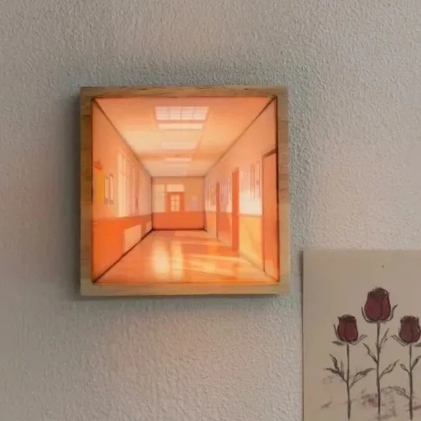 Questa creativa applique da parete con cornice in legno trasforma il tuo soggiorno con la sua affascinante illusione 3D. Sembra diverso se visto da diverse angolazioni, creando una magica illusione ottica. È come un'opera d'arte moderna vivente e pulsante che aggiunge un fascino unico a qualsiasi spazio. Perfetto per le case che cercano un design elegante con montaggio a parete che non richieda forature. La luce è facile da installare e la sua luce calda crea un'atmosfera accogliente.