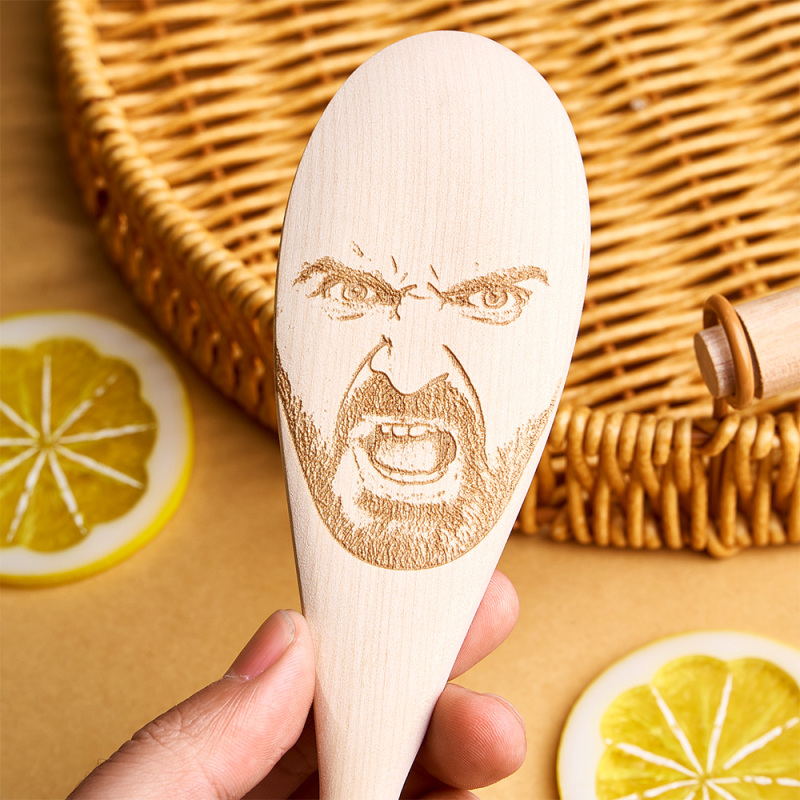 Seleziona una celebrità, un amico o un familiare e noi incideremo la sua immagine su un cucchiaio di legno. Se preferisci, puoi invece optare per il design mostrato nell'inserzione.