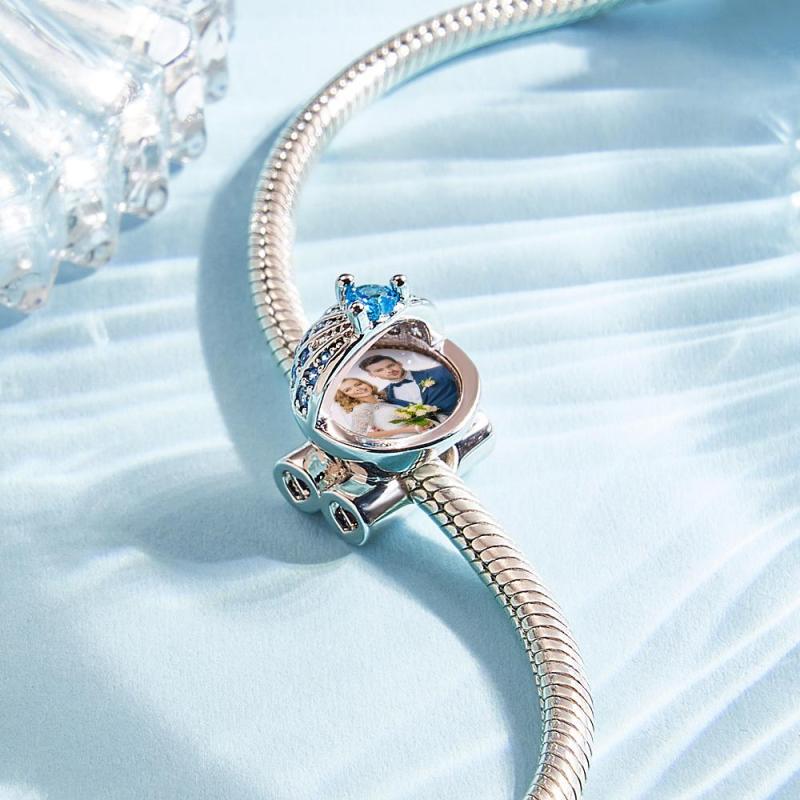 Il ciondolo con foto della carrozzina di questo bambino è un regalo perfetto per una nuova mamma. Puoi aggiungere sopra una delle foto del tuo bambino per ricordare il bellissimo momento trascorso insieme. Intarsiato con diamanti blu, questo ciondolo con foto aggiungerà brillantezza al tuo outfit. Inoltre, i cuori blu smaltati ti danno la sensazione di eleganza.