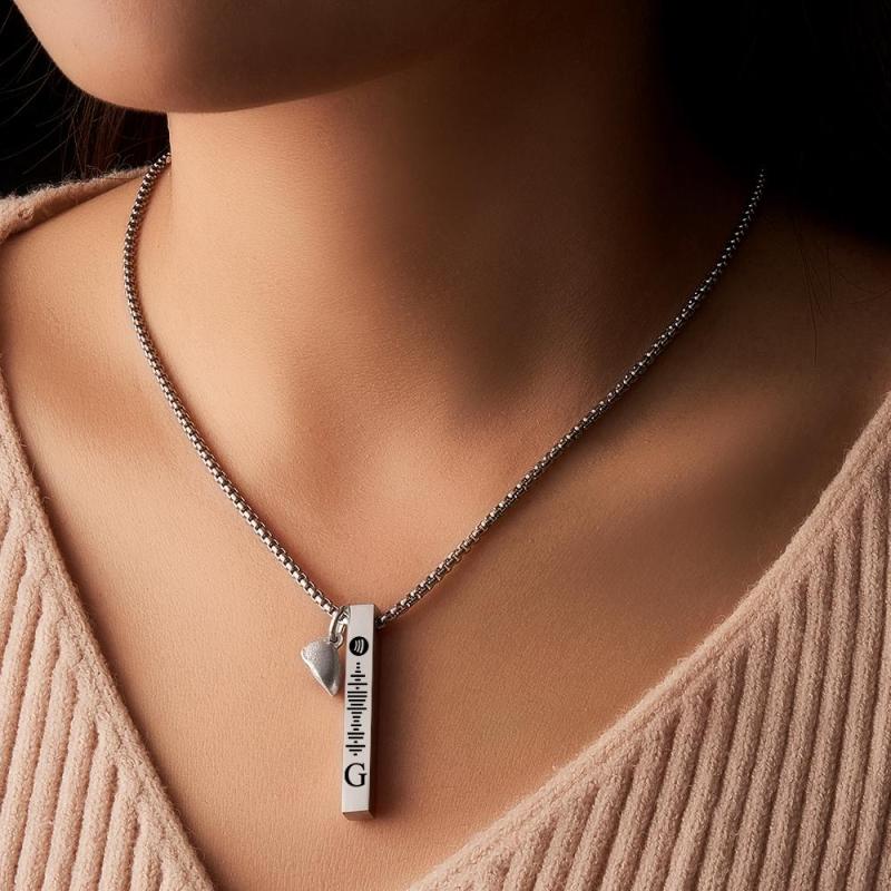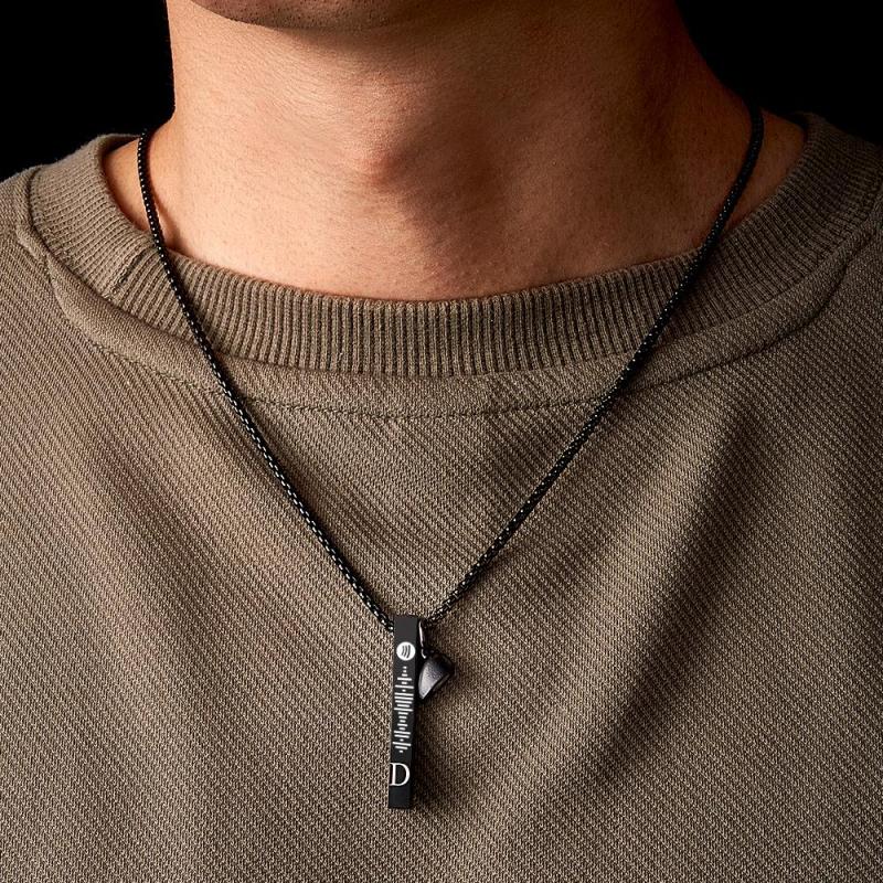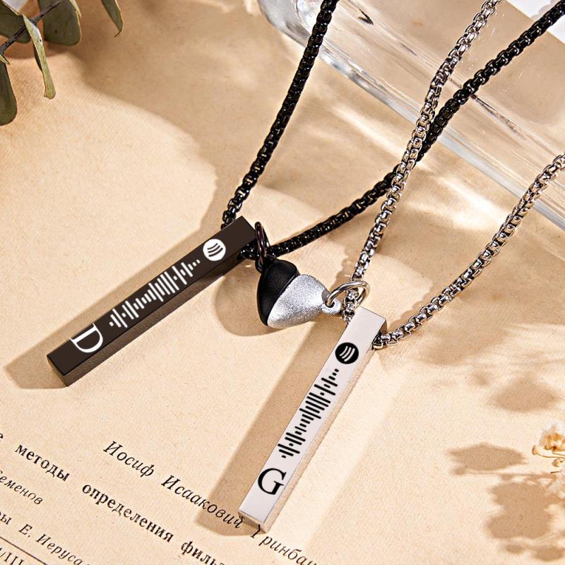 Apri un mondo di musica con questa collana a barra personalizzata, con l'incisione del codice Spotify di tua scelta. Rendilo personale con un'incisione iniziale per un pezzo unico nel suo genere che eleva qualsiasi outfit. Un regalo ideale per le coppie amanti della musica, questa collana ti sfida a esplorare l'ignoto. Fai il salto!