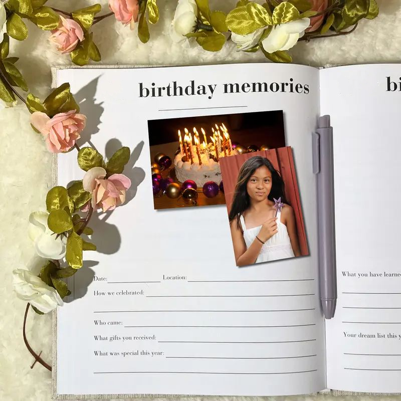 Il diario dei ricordi del compleanno è il tuo nuovo migliore amico per catturare tutta la magia. Progettato pensando ai neo-genitori indaffarati, questo elegante diario è più di un semplice libro: è una lettera sincera al tuo bambino che sarà custodita con cura per gli anni a venire.