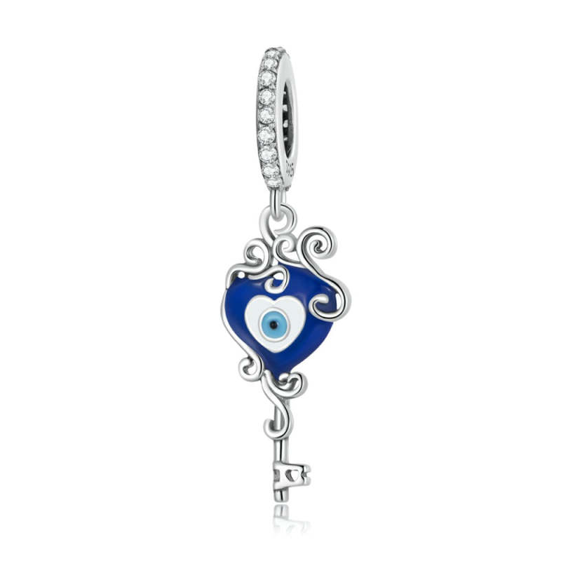 Charm Colgante Corazón Azul Mal de Ojo Plata