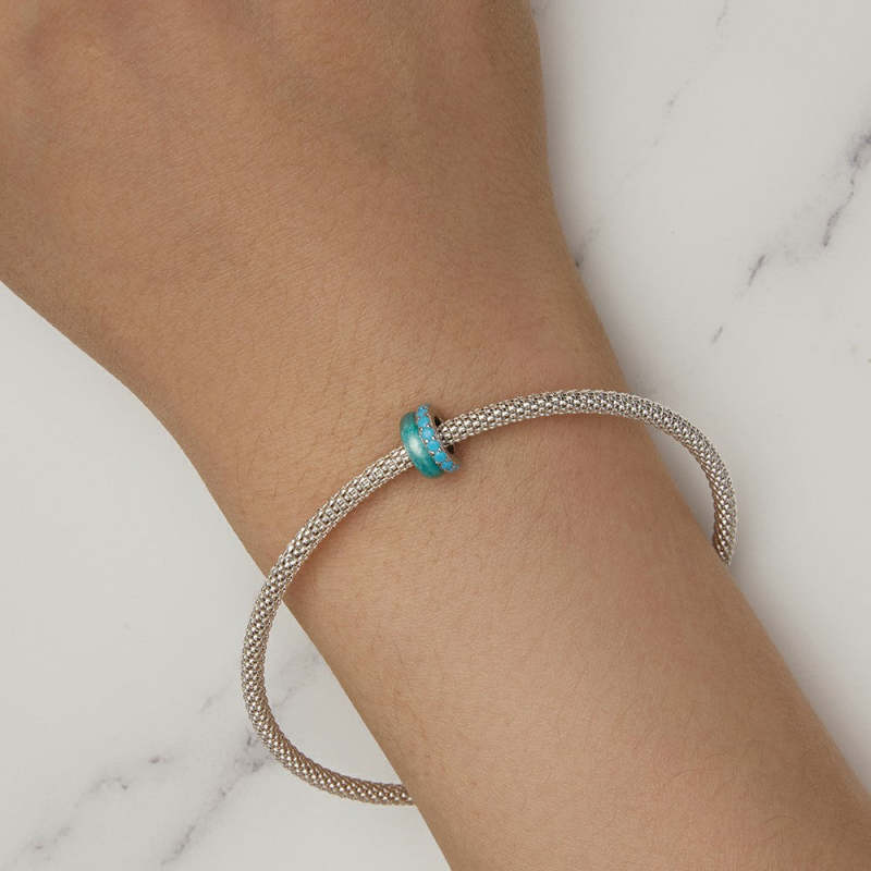 Ciondolo Distanziatore Con Ciondolo In Zircone Blu. Argento