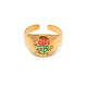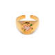 Questo anello aperto con amuleto smaltato è realizzato in acciaio inossidabile di alta qualità e presenta una finitura galvanica in vero oro che rimane vibrante poiché è stata dipinta con uno smalto delicato. Il suo design fatto a mano è disponibile in una varietà di stili e colori per migliorare qualsiasi look. Inalterabile e accattivante, questo anello aperto con amuleto è perfetto per ogni occasione.